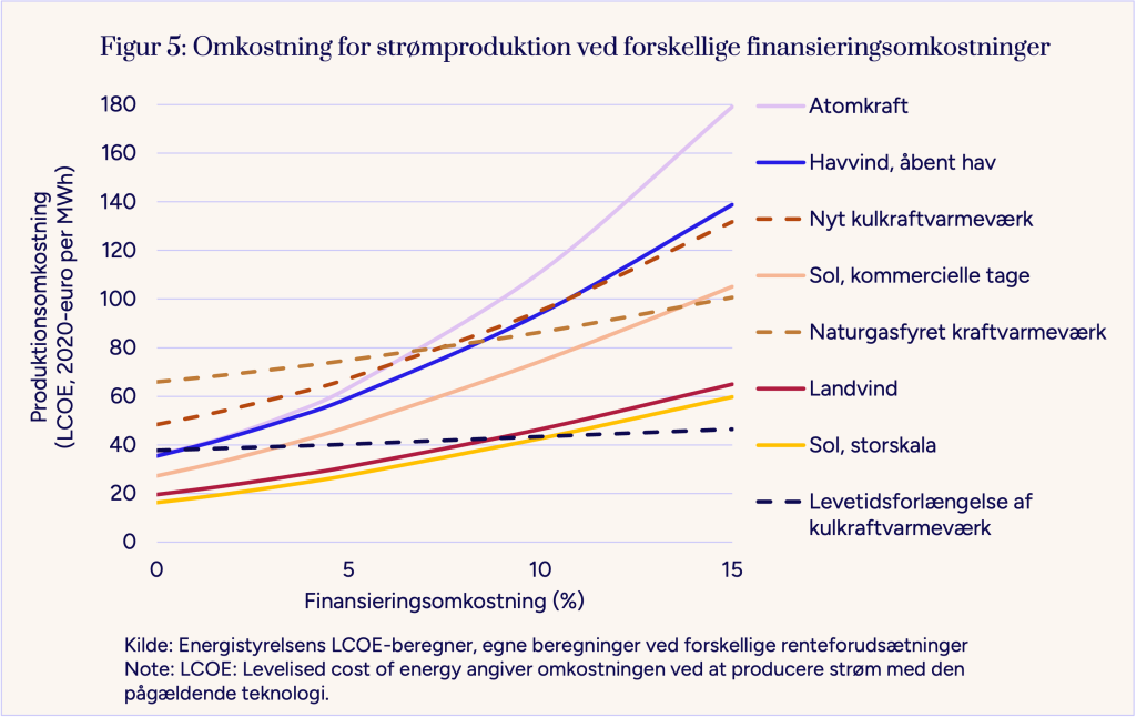 Høje finansieringsomkostninger er langt værre for vedvarende energi end for fossil energi eller afbrænding af biomasse. Lave finansieringsomkostninger giver billig strøm, hvilket vil gøre elektrificering og sektorkobling attraktivt.